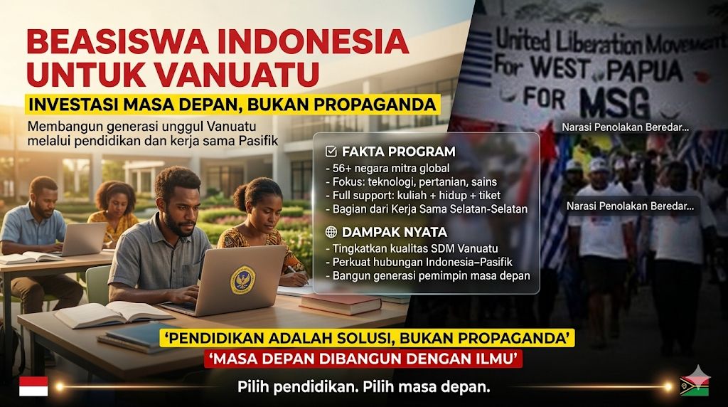 Dalam konteks historis, Vanuatu memang dikenal memiliki posisi politik tertentu terkait isu Papua Barat sejak dekade 1970-an. Namun, kerja sama pendidikan antarnegara, termasuk melalui program beasiswa, merupakan praktik umum dalam hubungan internasional dan tidak terkait langsung dengan dinamika politik domestik maupun regional.